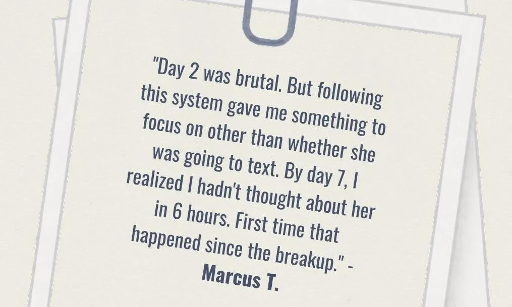 While other heartbroken people stay stuck checking their ex's Instagram and writing texts they'll never send, you'll be rebuilding your life using a proven system that actually works.